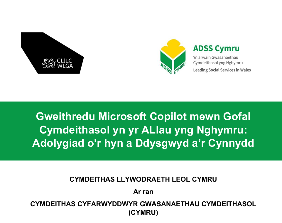 Mae'r adroddiad hwn yn rhannu canfyddiadau adolygiad cenedlaethol o sut mae Microsoft Copilot yn cael ei ddefnyddio ar draws gofal cymdeithasol i oedolion mewn awdurdodau lleol yng Nghymru.